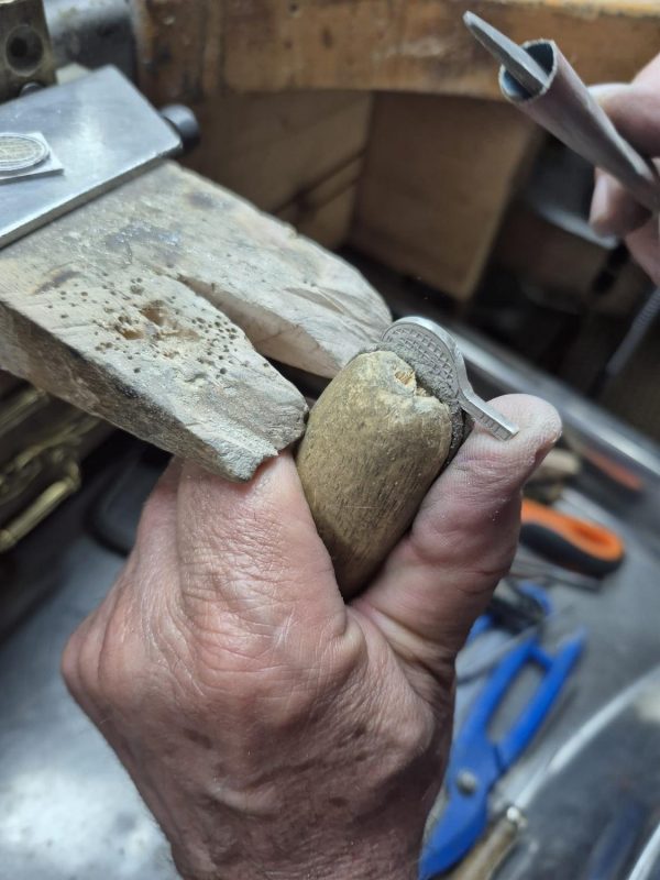 Cada gemelo fue limado, soldado y pulido manualmente. El grabado de la firma se hizo con herramientas de precisión, y el acabado final se realizó con esmero, buscando un equilibrio entre sobriedad y detalle emocional.