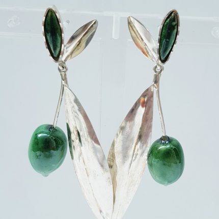 Pendientes colección Olivo hoja de olivo y aceituna cerámica verde