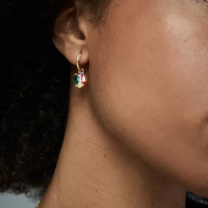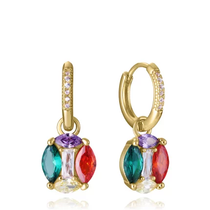 Pendientes de plata de primera ley con baño de oro, aro con circonitas y colgante con circonitas