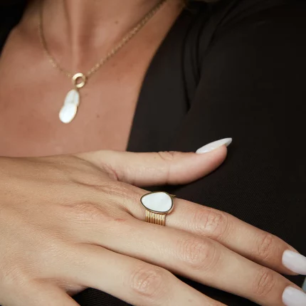 Anillo de mujer de acero Ip dorado múltiple unido con aro de madre perla
