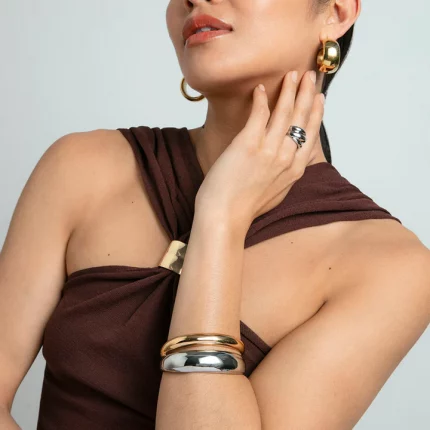Pulsera de mujer de acero e Ip dorado rígida volumen