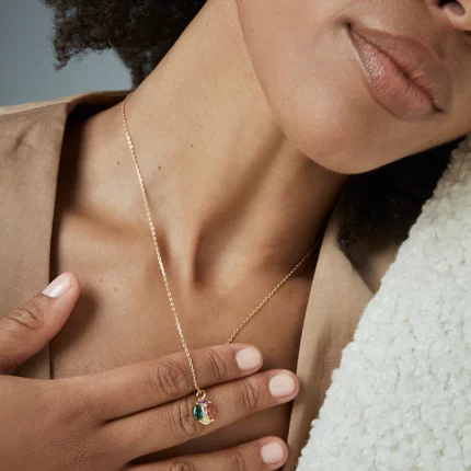 Collar de plata de primera ley con baño de oro y colgante con circonitas