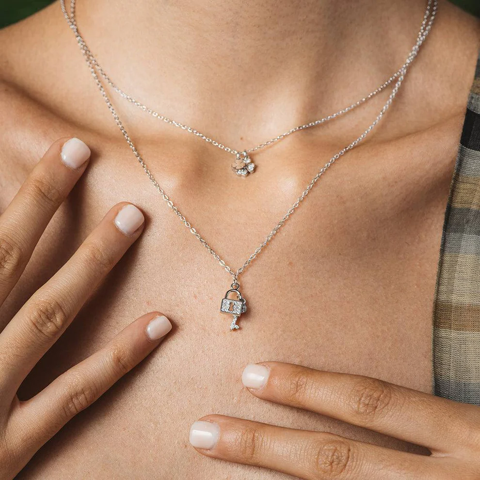Collar de plata y circonitas llave y candado