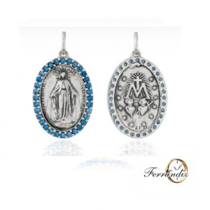 Medalla Virgen de la Milagrosa de plata con circonitas.