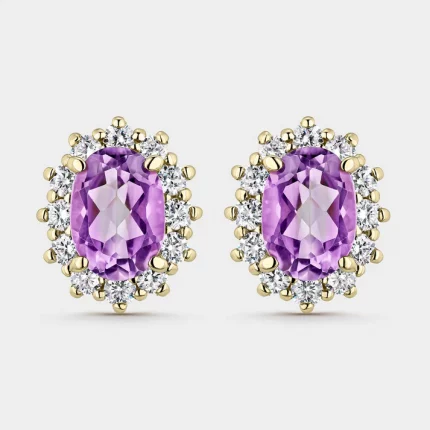• Pendientes oro amarillo cuajo circonitas con amatista. 635,00€