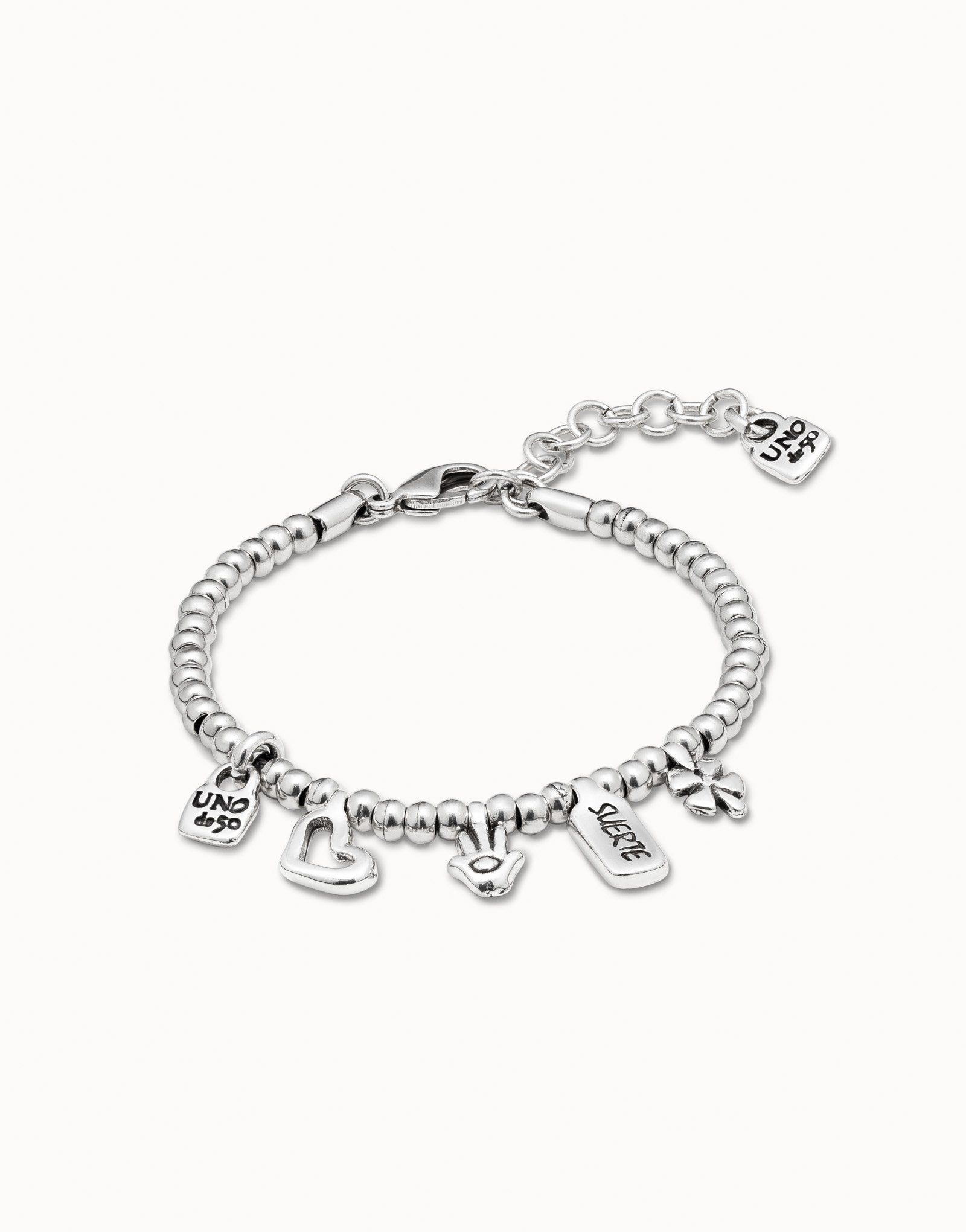 Pulsera bañada en plata de ley con charm corazón, trébol y mano