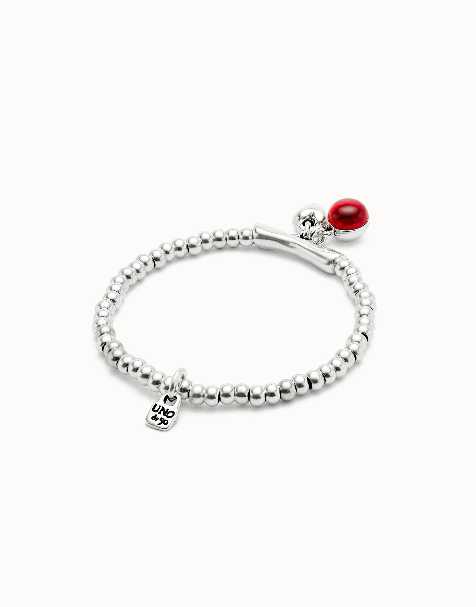Pulsera de bolas bañadas en plata de ley y cristal de murano rojo