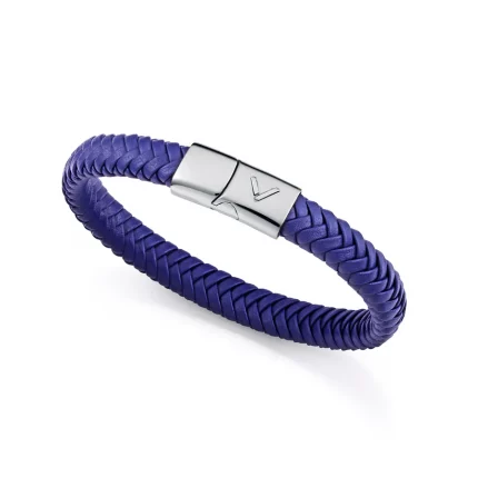 Pulsera de hombre de acero y piel azul trenzada