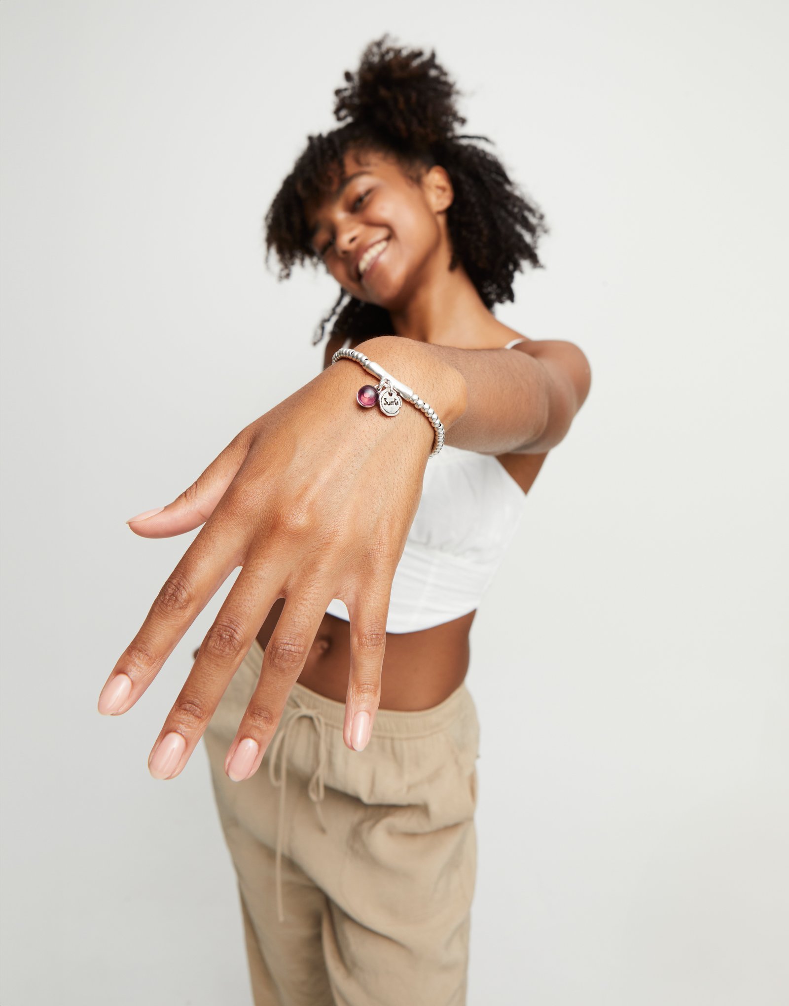 Pulsera bañada en plata de ley, cristal de murano y palabra suerte