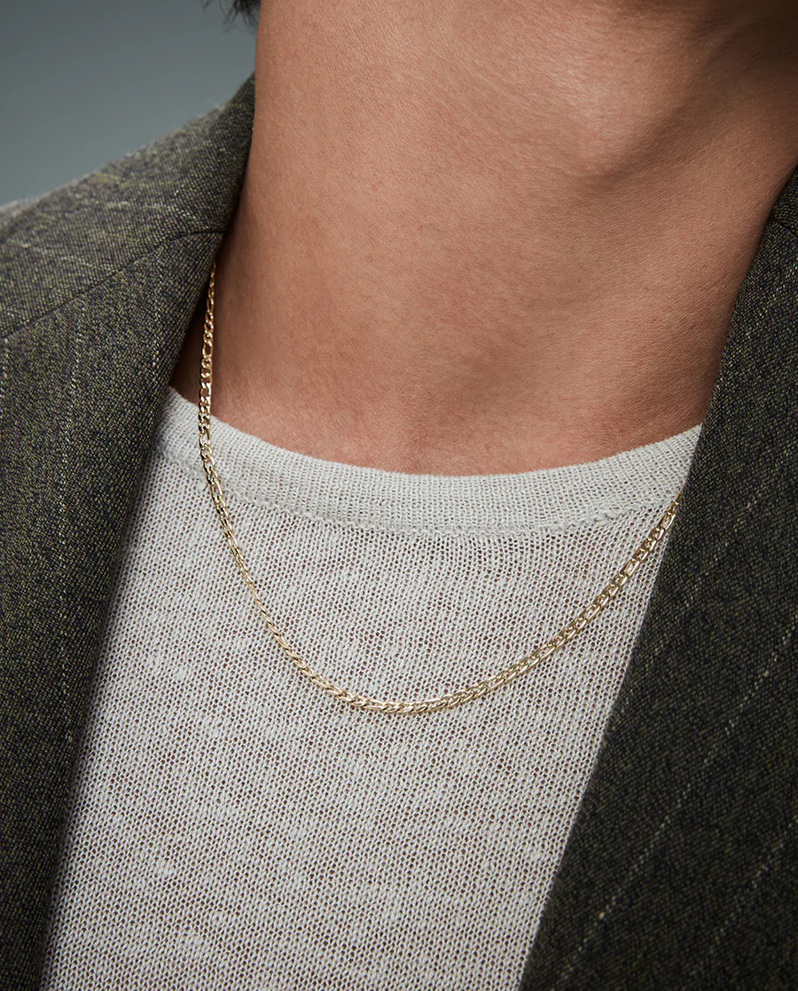Un collar que exuda sofisticación y estilo moderno. Fabricado en acero con un acabado IP dorado, presenta una cadena de diseño elegante y atemporal, perfecta para añadir un toque de lujo a cualquier look. Con un largo de 55 cm más 5 cm de extensión, se adapta cómodamente a diferentes estilos y escotes, ofreciendo versatilidad y comodidad. Ideal para hombres que buscan un accesorio que combine distinción y frescura, este collar es perfecto tanto para el día a día como para ocasiones más especiales, realzando el estilo con un toque de brillo sutil.