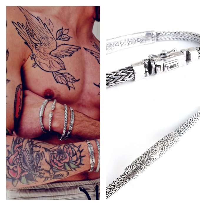 Plsera labrada de hombre en plata de ley, hechas a mano, con doble cierre de seguridad y plata maciza. 20 cm de largo.