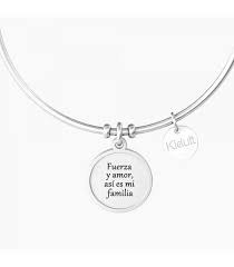 Brazalete de acero con colgante redondo de raso con acabado de tachuelas, cristal, Árbol de la Vida y escritura «Fuerza y amor, esta es mi familia».