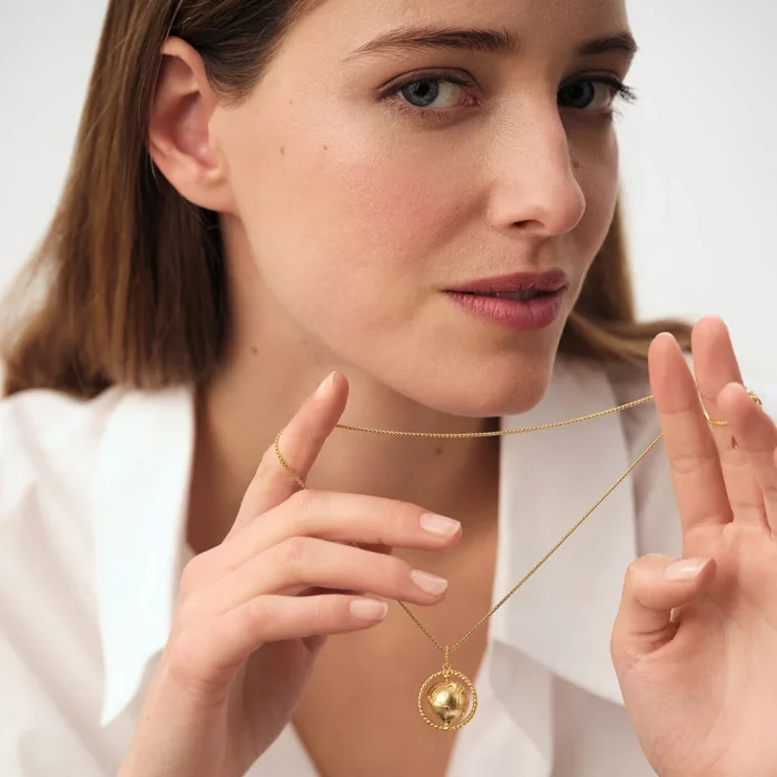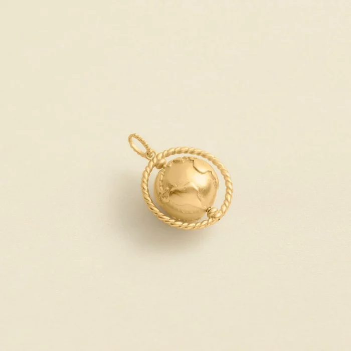 ¿Te gusta viajar? Con este amuleto atraerás muchos viajes y vivirás mil aventuras. Llevándolo, recordarás todos los lugares que has visitado y lo que han significado para ti. Es una joya hecha al detalle, la bola del mundo gira, aportando movimiento a la pieza y los continentes están dibujados con relieve. Crea tu collar personalizado con los amuletos de moda de la nueva colección de Maria Pombo X AGATHA