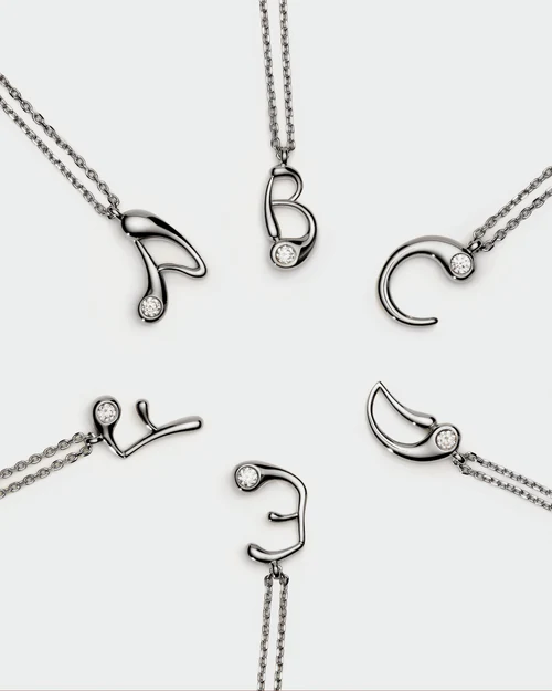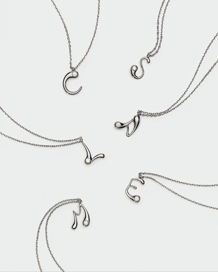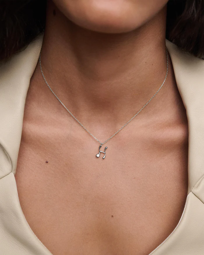 Collar con colgante de inicial H en plata de ley con detalle de circonia y silueta ondulada, bañado en rodio.