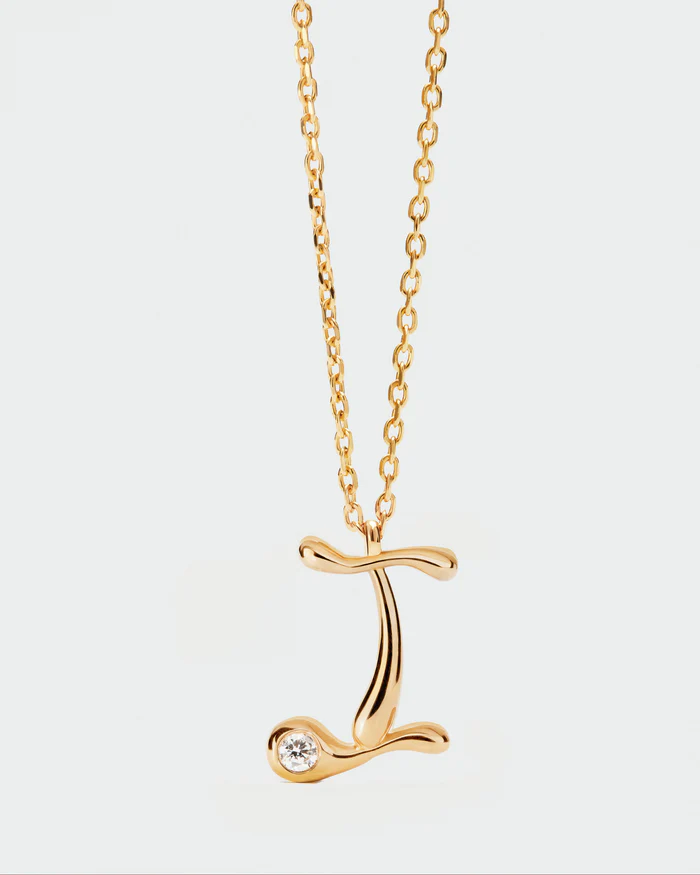 Collar de plata de ley con baño de oro y colgante de inicial I en suaves líneas curvas