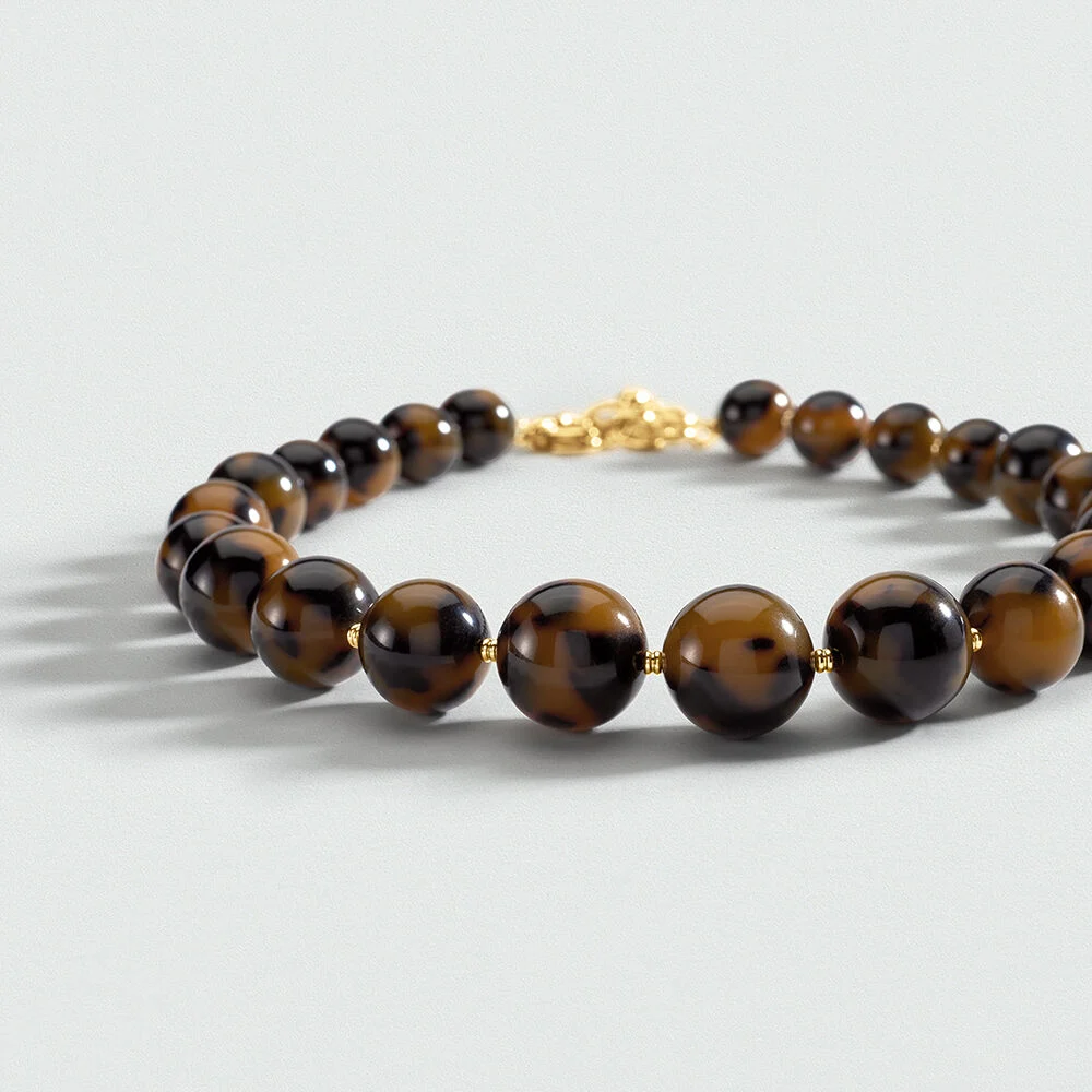 Collar acabado en oro de bolas de acetato. Lo tienes en varios tonos para elegir. Una apuesta de lo más favorecedora para esta temporada. Son ideales para llevar en tu día a día y dar un toque perfecto de color a tus looks. Esta joya mide 420 mm con un alargo extra de 50 mm