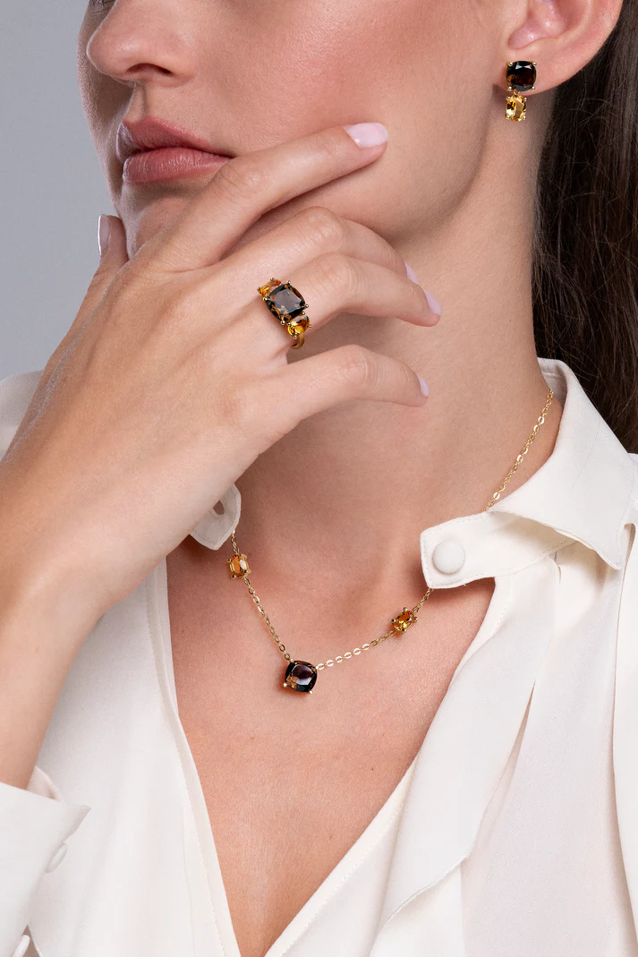 • Material: ORO 18 Ktes, CUARZO FUMÉ Y  CITRINO.