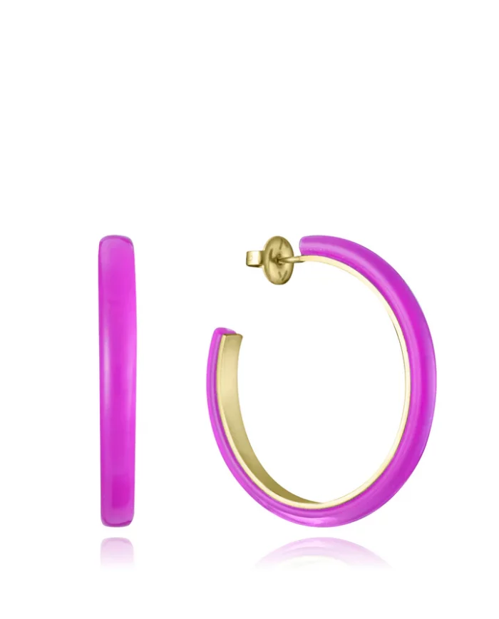Preciosos pendientes de acero dorado y morado acrílico para mujer. Un complemento protagonista, que concentre todas las miradas. Una joya total, un acierto siempre. Lucir segura y bella nunca fue tan fácil, ni tan bonito. Hazte con estos pendientes en exclusiva de Viceroy. Diámetro: 3,6 cm