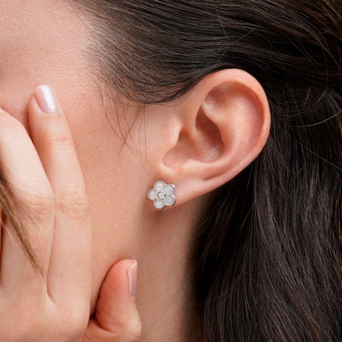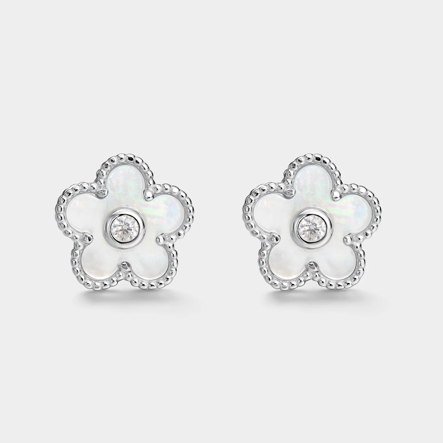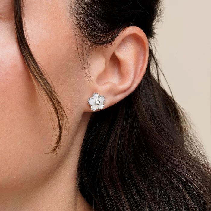Exuberantes y exclusivos, nuestros hermosos pendientes flor de madre perla y círculo central son una verdadera obra de arte. Con su delicada flor de madre perla y su circonita central que evoca el brillo de la luna, estos pendientes te brindarán elegancia y sofisticación a cualquier outfit.