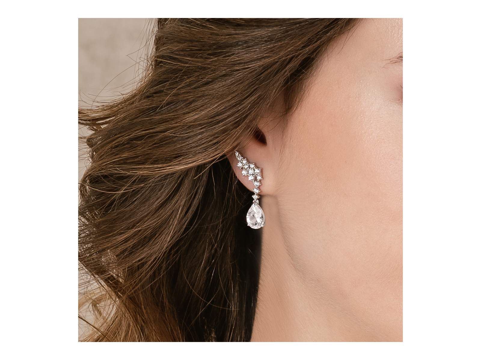 Pendientes de plata de primera ley (925) con baño de rodio y circonita blanca. (tamaño: 3 cm.)