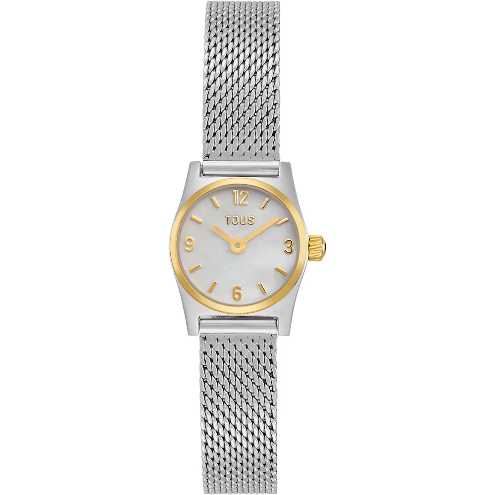 Reloj analógico TOUS EPIC MINI con caja y brazalete de malla milanesa de acero inoxidable.